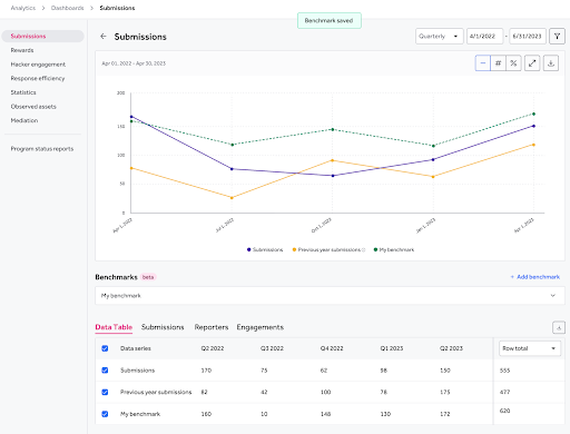 Maintaining an effective security program requires more than simply tracking metrics—it demands a deeper understanding of your performance in context. Knowing how fast your team responds to vulnerabilities or the volume of submissions you receive is important, but these numbers alone don't reveal how you stack up against industry standards or whether your efforts are improving year-over-year.