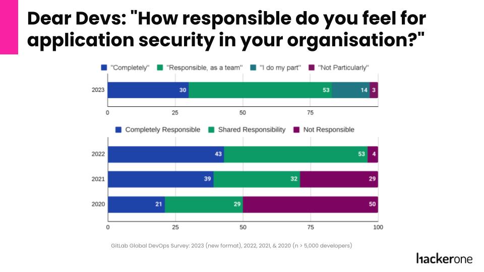 Ultimately, these issues stem from a failure to truly prioritize and design for the developer experience. However, the good news is that developer attitudes towards security are shifting rapidly. GitLab's recent survey found that 97% of developers now feel responsible for application security, up from just 50% in 2019.