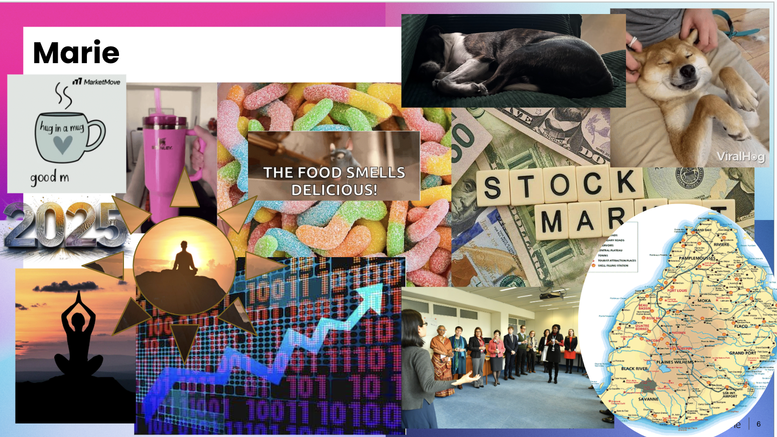 The activity was simple yet powerful. Participants claimed a slide in a collaborative deck, added their names, and responded to a series of prompts by pasting images that resonated with their goals and aspirations. From career milestones to personal well-being, each board became a colorful snapshot of what we hope to manifest in the year ahead.